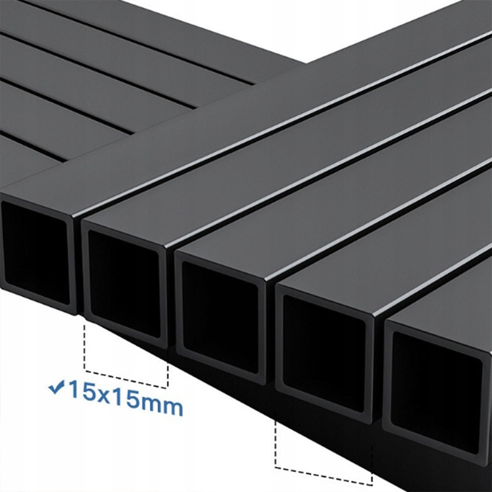 - Solidna i trwała konstrukcja – metalowa rama malowana proszkowo oraz teksturowane półki z efektem drewna.