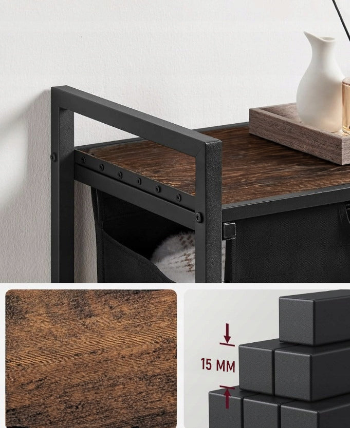 Kosz na pranie wolnostojący z półką industrialny loft drewniany to funkcjonalne I stylowe rozwiązanie do przechowywania brudnej bielizny, które równocześnie stanowi efektowny element dekoracyjny w twojej przestrzeni.