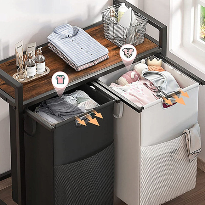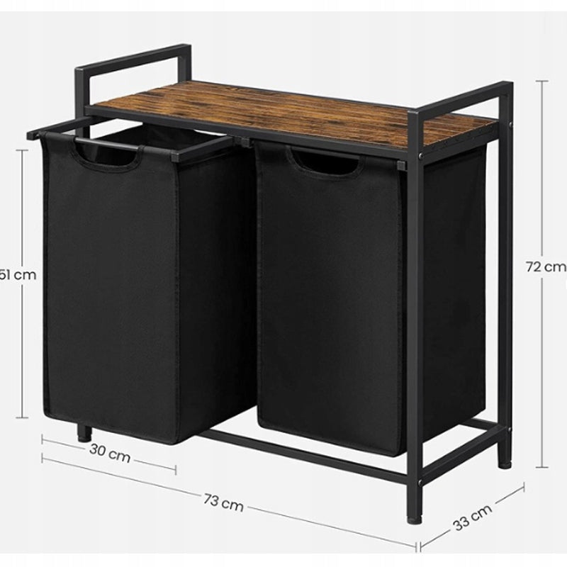 Duży kosz na pranie dwukomorowy z półką industrialny regał pojemnik loft