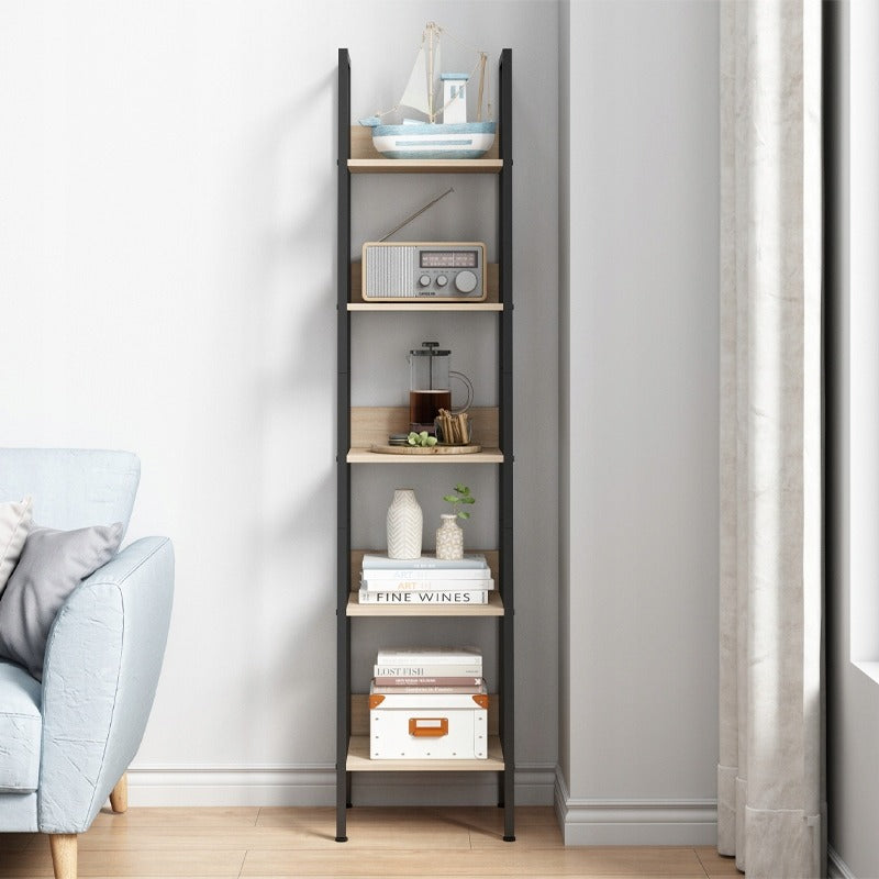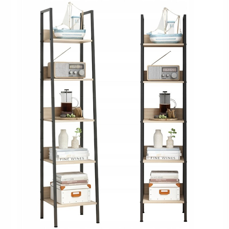 Industrialny wysoki regał stojący – jasny brąz, 5 półek, styl drabinkowy