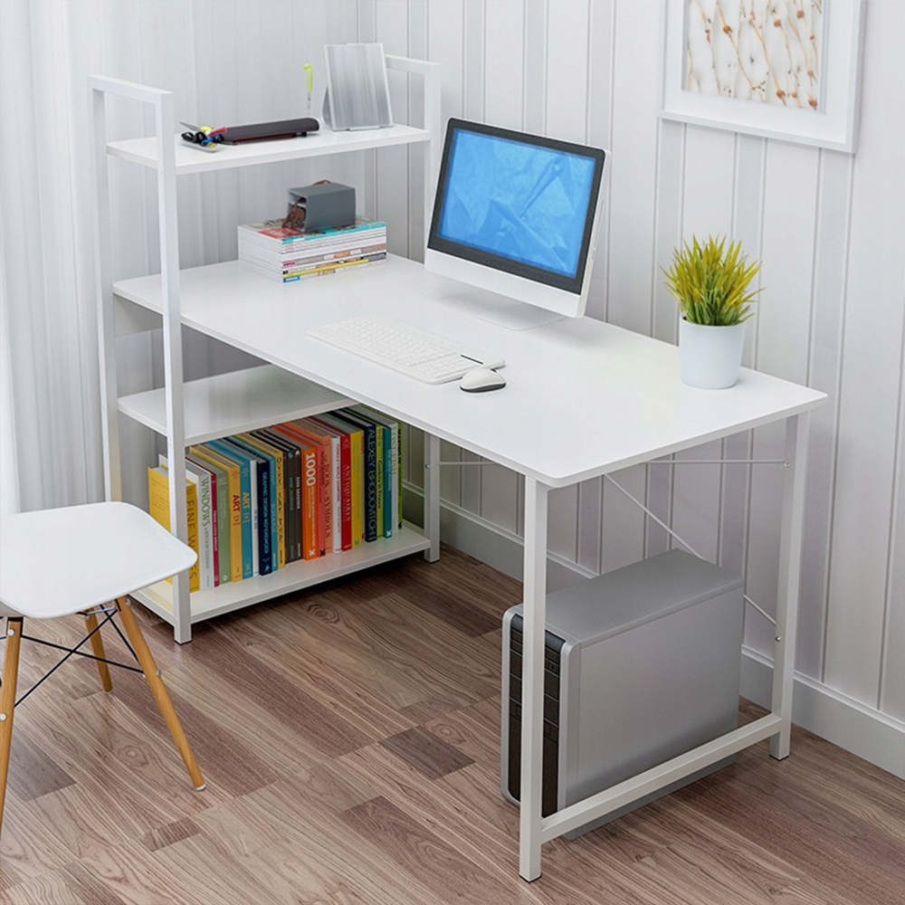 Nowoczesne białe biurko z bocznymi półkami - 120x55x72 cm - idealne do domowego biura