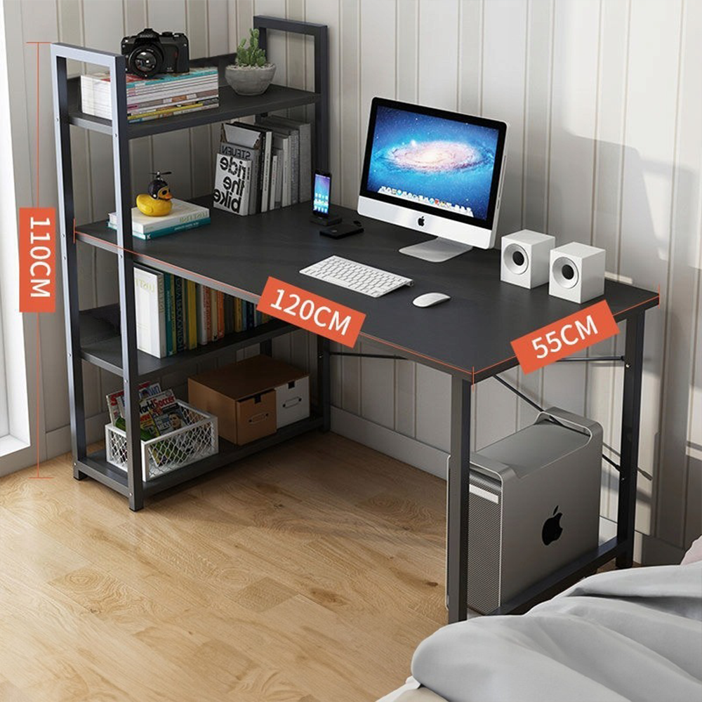 Nowoczesne biurko dla młodzieży z wbudowaną półką - 120x55x110 cm, 3 półki, MDF, czarne
