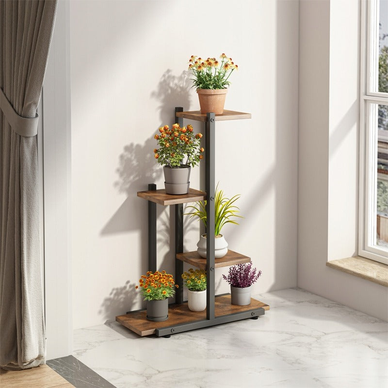 Stylowa i funkcjonalna półka na kwiaty w stylu loft to idealny wybór do nowoczesnych i rustykalnych wnętrz. Połączenie metalowej ramy z drewnianymi półkami tworzy unikalny mebel, który nie tylko efektownie eksponuje rośliny, ale także stanowi dekorację każdego pomieszczenia.