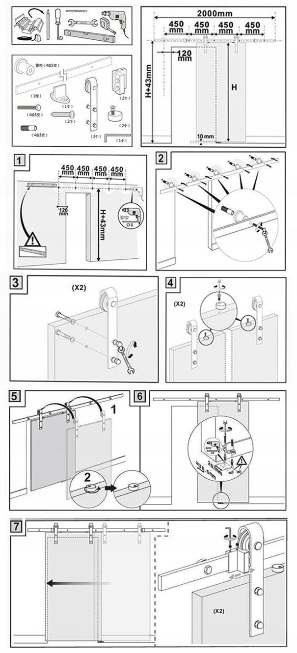 System drzwi przesuwnych barn door zestaw okuć 2m