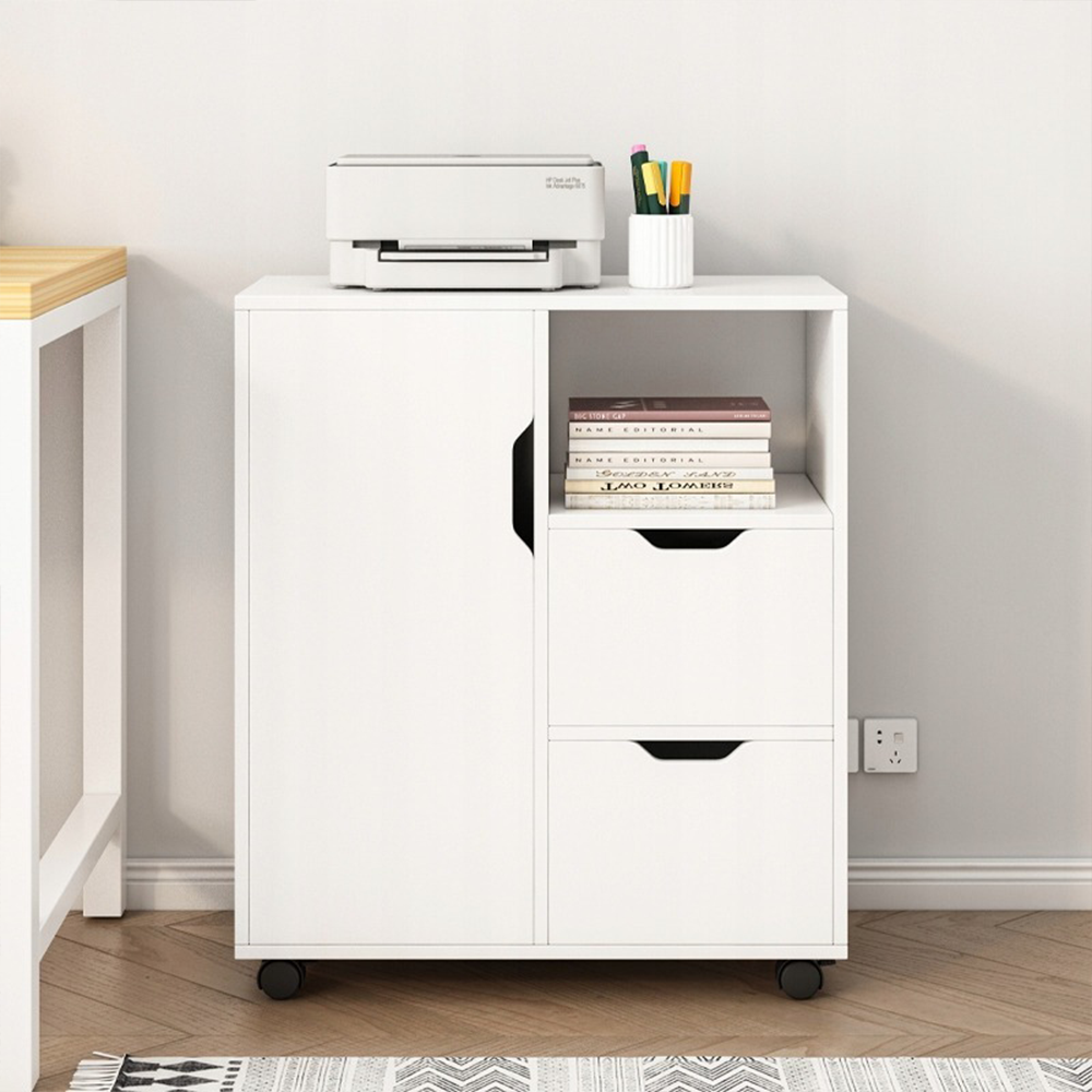 Szafka na drukarkę, biała – 60 x 70 x 35 cm – wielofunkcyjna, nowoczesna, z 3 półkami