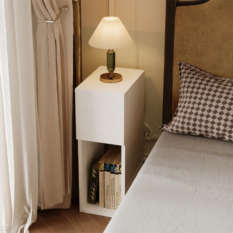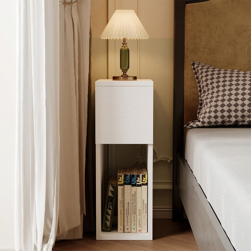 Szafka nocna biała z szufladą stolik z półką nowoczesny loft do sypialni
