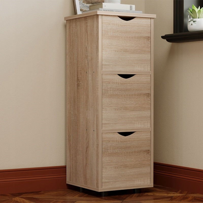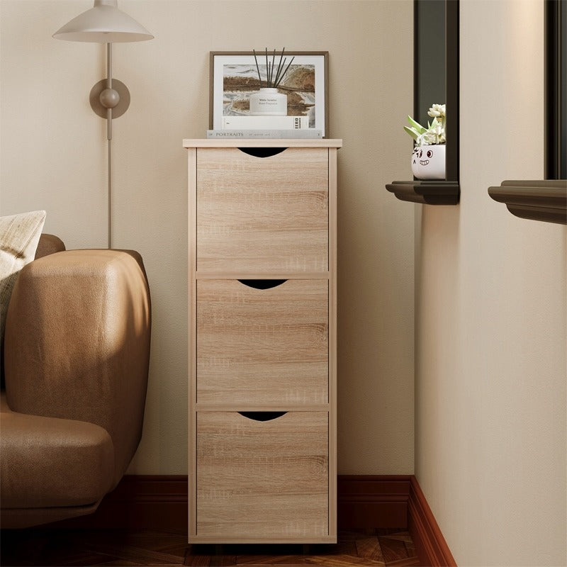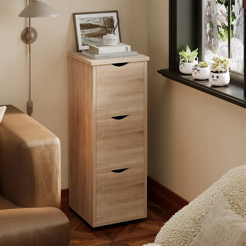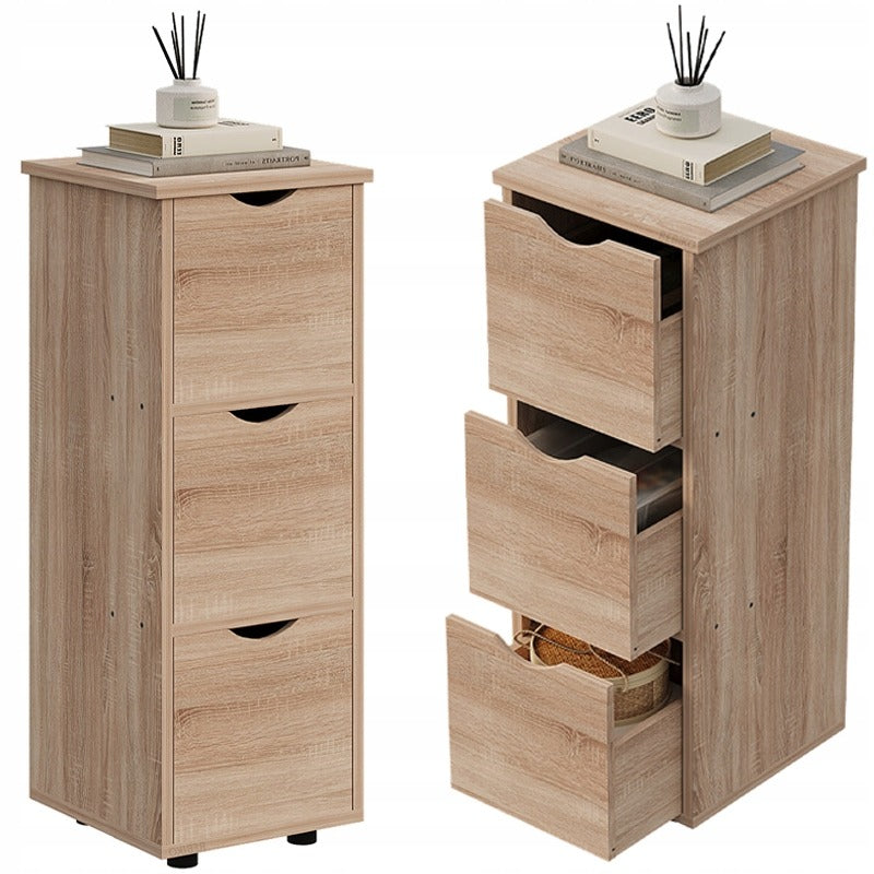 Stylowa I funkcjonalna szafka słupek w kolorze rustykalnego dębu to idealne rozwiązanie do salonu, sypialni, łazienki czy przedpokoju. Wąska konstrukcja pozwala ustawić mebel nawet w ograniczonej przestrzeni, a pojemne szuflady zapewniają wygodne przechowywanie