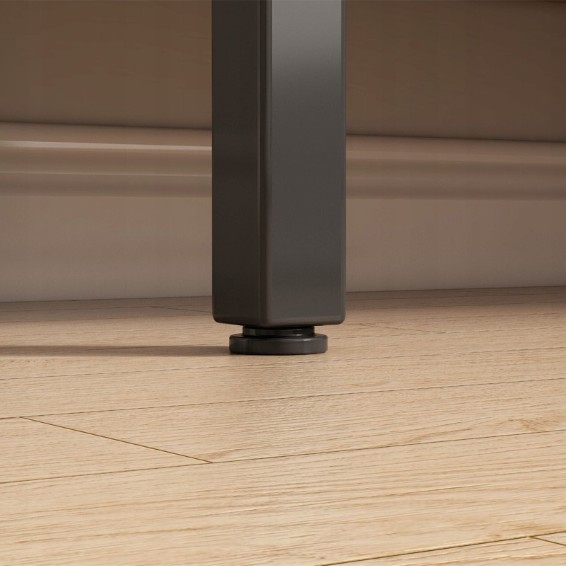 - Solidna budowa – metalowy stelaż i półki z MDF, uzupełnione bocznymi kratownicami, które zwiększają stabilność i dodają charakteru.