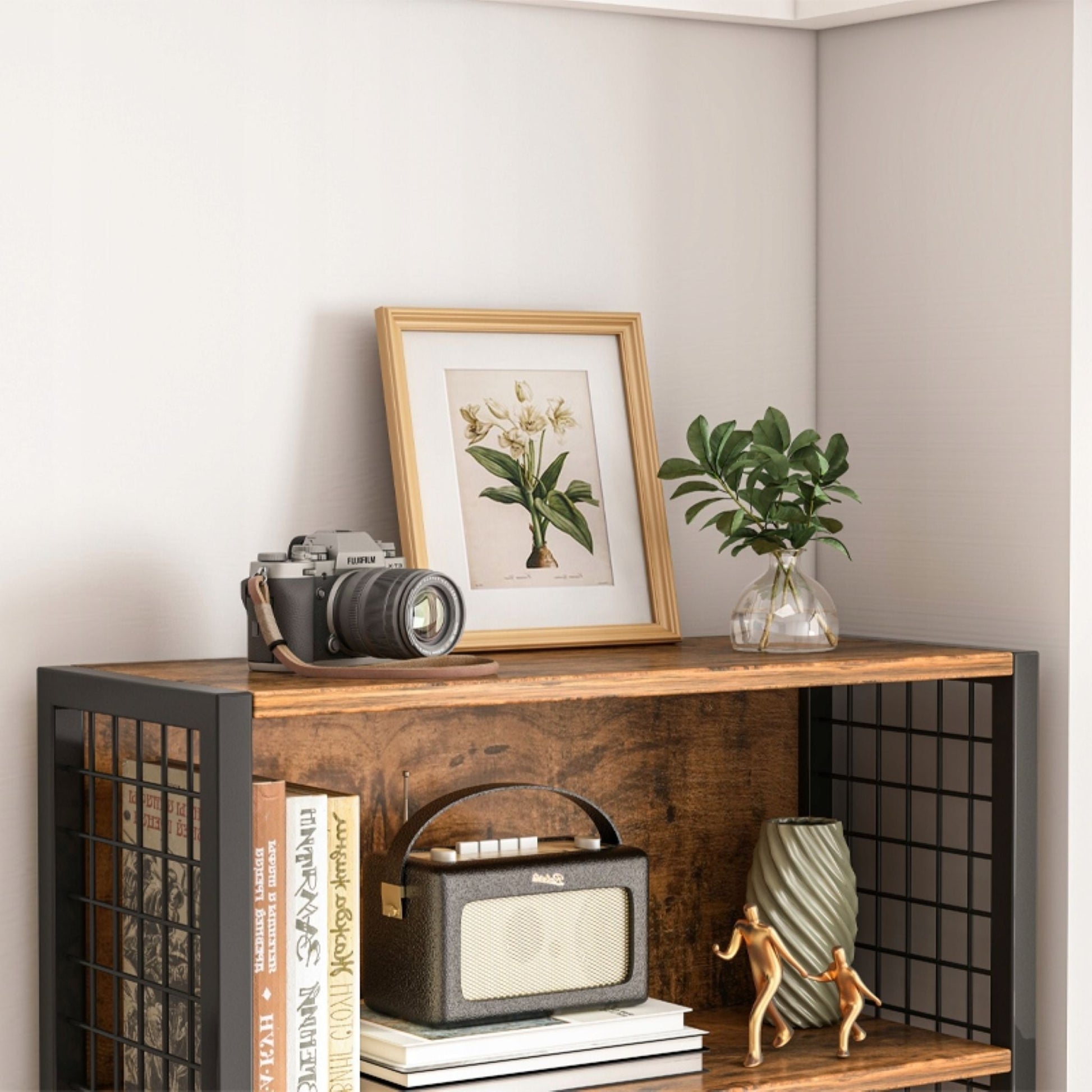 Odśwież atmosferę swojego domu dzięki tej nowoczesnej biblioteczce w stylu industrialnym, idealnej do przechowywania i dekoracji. Wykonana z trwałej płyty MDF z wykończeniem imitującym stare drewno, wsparta na matowej czarnej ramie metalowej – łączy solidność z eleganckim designem.