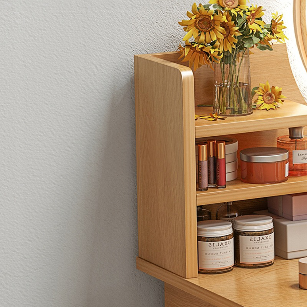 Ta toaletka z okrągłym lustrem to idealny wybór do sypialni lub łazienki w stylu nowoczesnym, klasycznym lub rustykalnym. Wykończenie w odcieniu jasnego buka (efekt naturalnego drewna) nadaje meblowi ciepły, tradycyjny wygląd, który łatwo wkomponowuje się w różnorodne wnętrza.
