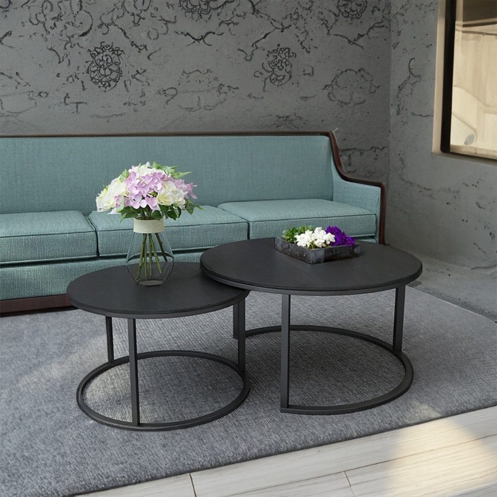 Czysty, okrągły i elegancki kształt nadaje pomieszczeniu harmonijny wygląd, a czarny kolor tworzy nowoczesny i wyrazisty kontrast. Dzięki różnym rozmiarom oba stoliki mogą być używane razem lub osobno, łatwo dopasowując się do przestrzeni i potrzeb.
