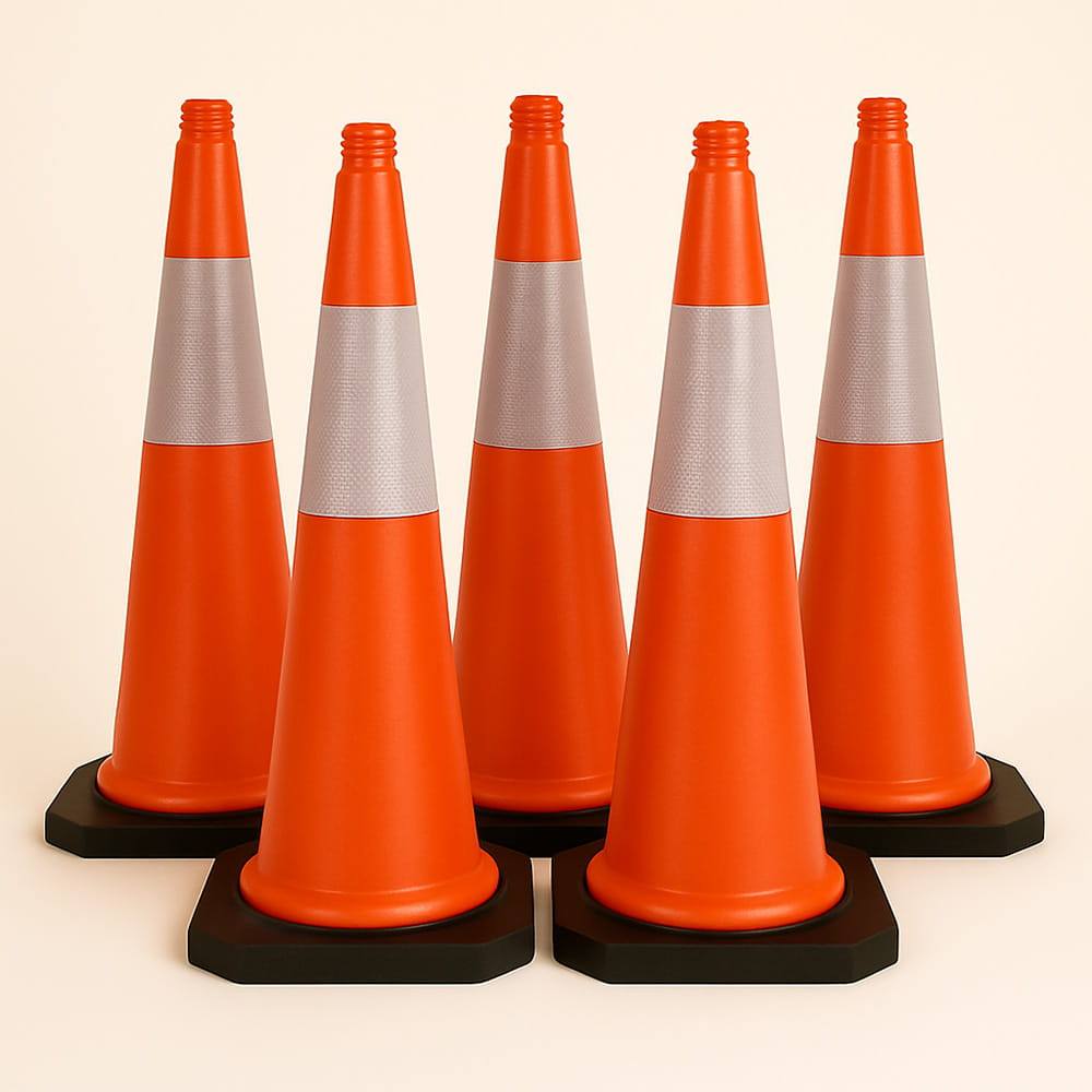 Zestaw 5 pachołków drogowych z paskami odblaskowymi – 75 cm, odpornych na warunki atmosferyczne