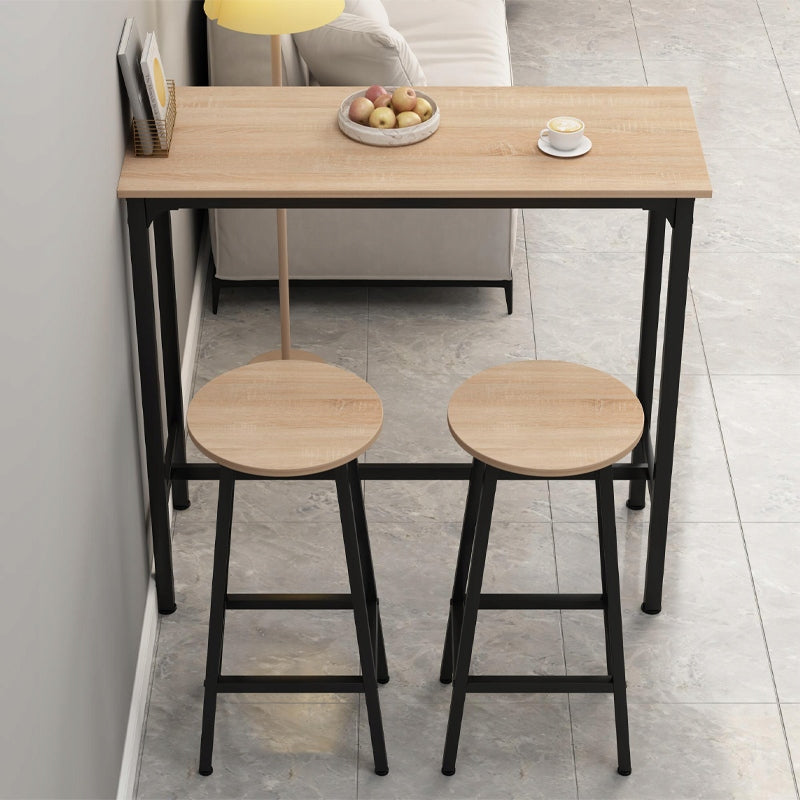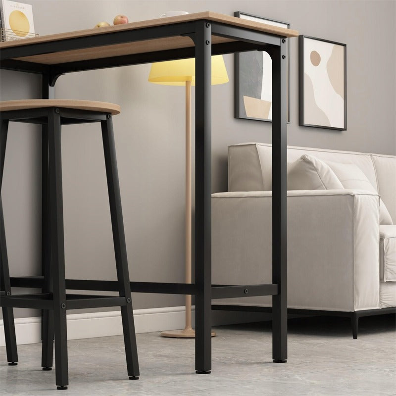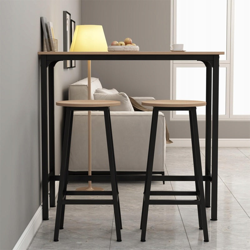 Stylowy I funkcjonalny zestaw barowy w kolorze jasnego brązu to doskonałe rozwiązanie do kuchni, jadalni lub salonu. Łączy w sobie ciepły odcień drewna z czarnym metalowym stelażem, tworząc modny loftowy wygląd, który wpasuje się w każde nowoczesne wnętrze